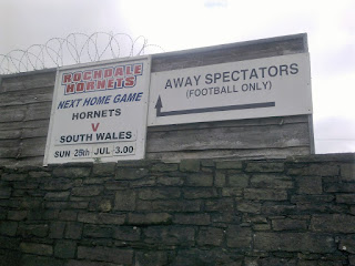 I was in Greater Manchester on the second of three days sightseeing, groundhopping and socialising. The weather may have been grey, but everywhere the welcome had been warm. I had visited Rochdale Town before taking a bus into the centre of town. Another bus took me past the surprisingly pleasant main area and up into the hills towards Spotland, getting off in Edenfield Road.