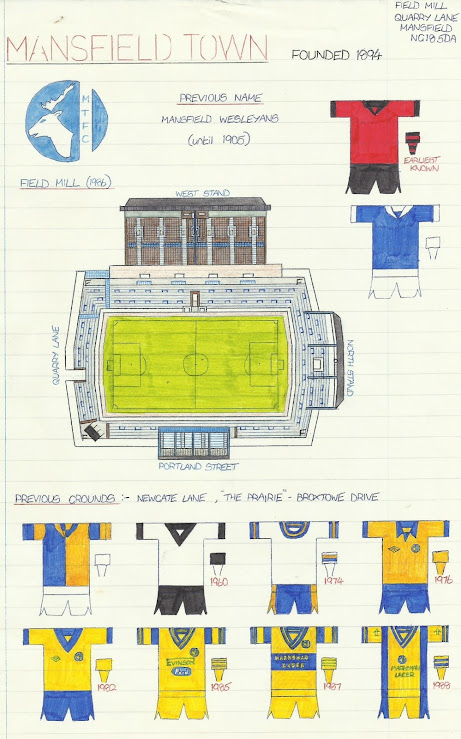 | My drawing of Field Mill, team kits, and club crests. Feel free to click on the images for an enlarged look. |